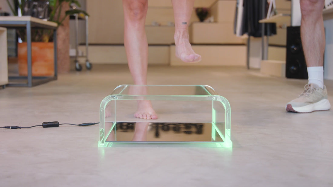 Naast de videoanalyse gebruiken we ook een podoscoop: een speciaal apparaat waarmee we de stand van je voeten in rust bekijken. Dit geeft inzicht in je voettype, drukverdeling en eventuele standsafwijkingen. Deze informatie is ondersteunde bij het adviseren van de juiste hardloopschoen, in combinatie met jouw loopstijl en trainingsdoelen.